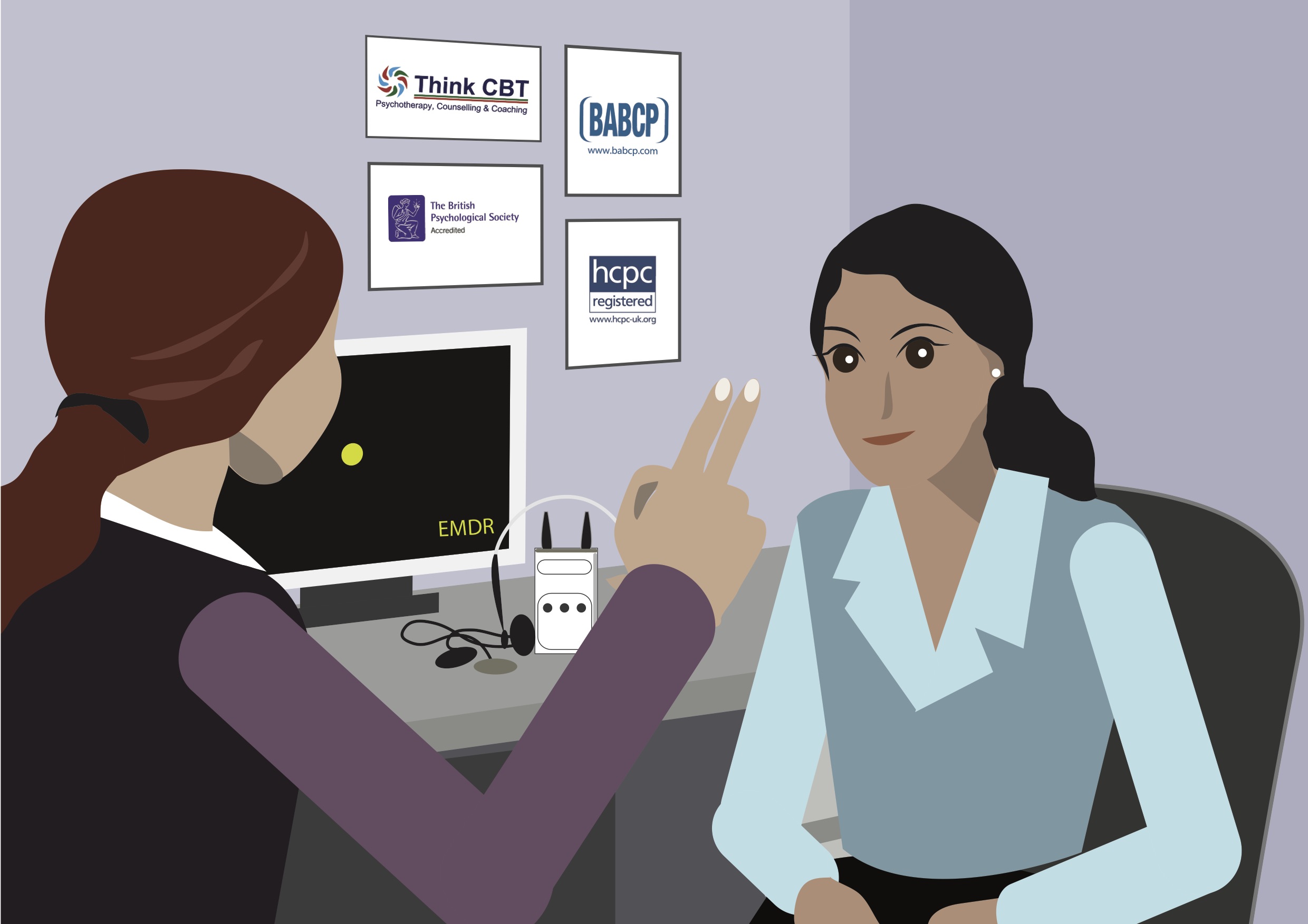 We provide Eye Movement Desensitisation and Reprocessing (EMDR) treatment from our clinics in London, from many of our 200 plus UK consulting rooms and online via video link. Our EMDR therapists have received accredited clinical training to an advanced level, so you know that you are working with a real EMDR expert. EMDR is a NICE recommended treatment of choice for trauma, PTSD and other psychological disorders and the research evidence proves that it works. To talk to an EMDR expert about treatment for trauma-related problems, PTSD or other anxiety conditions, call +44 1732 808 626 or email appointments@thinkcbt.com
